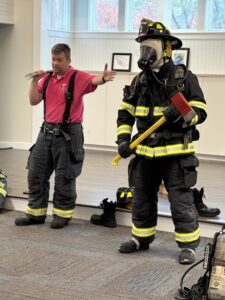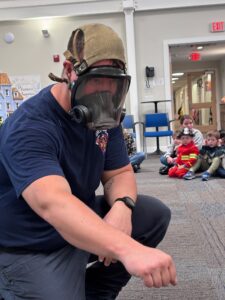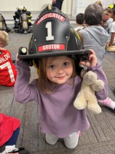 October is Fire Safety Month, and we are so grateful to Groton Fire Fighters Aaron Doherty (Charlie is in Purple Pre-K) and Chris Quigley (Logan is in the FD Pre-K) for spending a morning with us and sharing many safety tips, along with showing us many pieces of equipment and protective gear that they use when fighting fires. While Groton does not get the SAFE grant for visiting schools any longer, both dads took time out of their busy schedules to help teach fire safety and prevention. We are so fortunate to now have our spacious Community Room for gatherings such as this. Learning begins now for children, and we are so grateful to Aaron and Chris for helping us instill prevention and safety in a fun and hands-on way!!